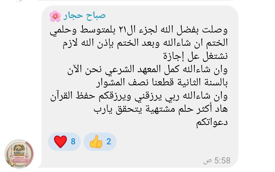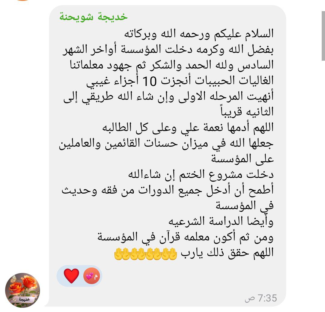 الحمدُ لله الذي ماختم جُهد ولا تمّ سعيٌ إلا بفضله..🤲 جزى الله خيرا كل من ساهم في نجاح هذه المؤسسة